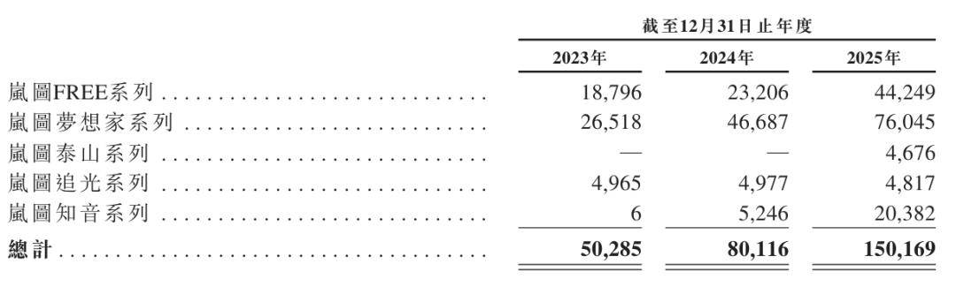 其中,岚图梦想家系列在2025年的销量为76,045辆,岚图FREE系列销量为44,249辆,岚图知音系列销量为20,382辆,岚图泰山系列销量为4,676辆,岚图追光系列销量为4,817辆车。