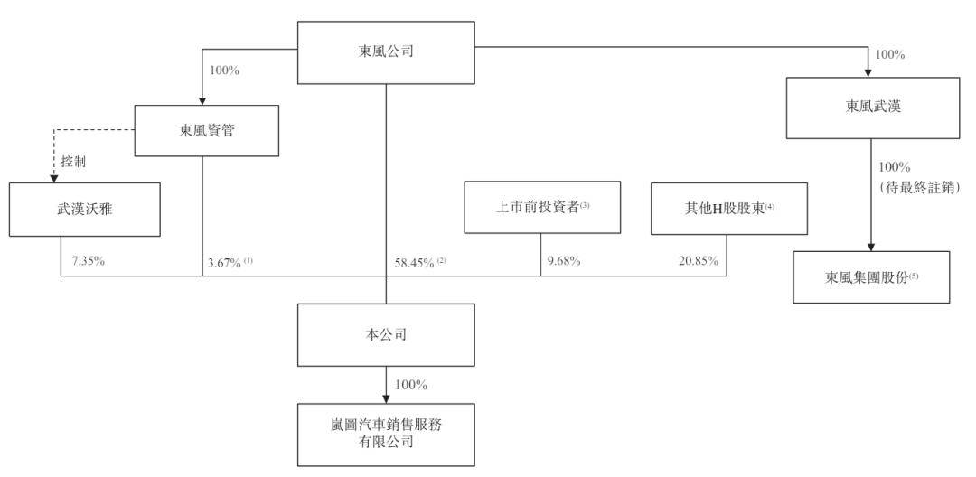 紧随上市及私有化完成后,东风公司、及其控制实体东风资管及武汉沃雅将分别直接持有岚图汽车已发行股本总额约58.45%、3.67%及7.35%。因此,上市后东风公司将有权于岚图汽车股东会上行使约69.47%的投票权。