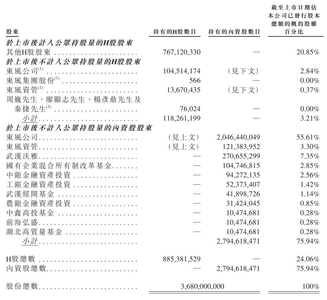截至最后实际可行日期,东风集团股份及东风资管(均为东风公司的附属公司)分别直接持有岚图汽车已发行股本总额约79.67%及3.30%,而武汉沃雅(其执行事务合伙人(辕憬管理)为东风资管之附属公司)直接持有岚图汽车已发行股本总额约7.35%。